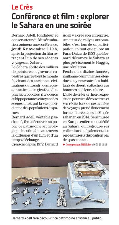 Le Musée Saharien organise le jeudi 27 novembre 2025 à 19h précises, une conférence donnée par Paul Pandolfi et intitulée: Tin-Hinan, ancêtre féminine des Touaregs Kel-Ahaggar / De l’archéologie à l’ethnologie.