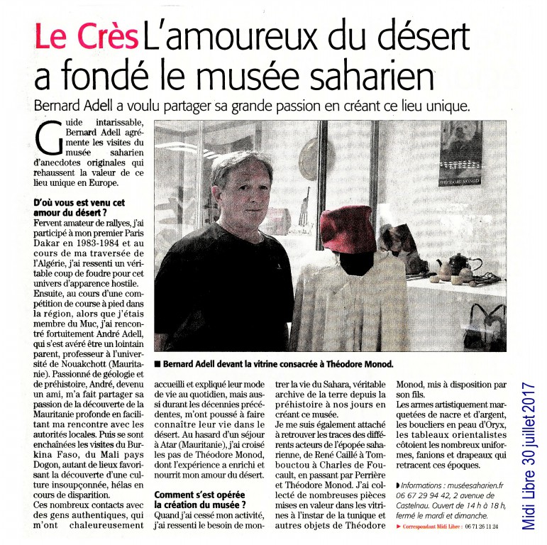 Un nouvel article sur le Musée saharien, dimanche 30 juillet. L’occasion d’une vraie découverte ou d’une nouvelle visite…